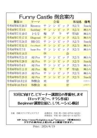 例会案内 令和6年6月 - 9月
