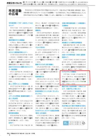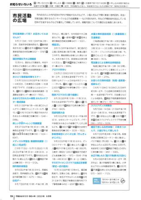令和4年8月号 19ページ「市民活動の広場」にスクエアダンス体験会の記事が掲載されました。