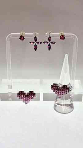 ハートはガーネット、グレープガーネット、ピンクサファイアのグラデーションミステリーセッティングです。