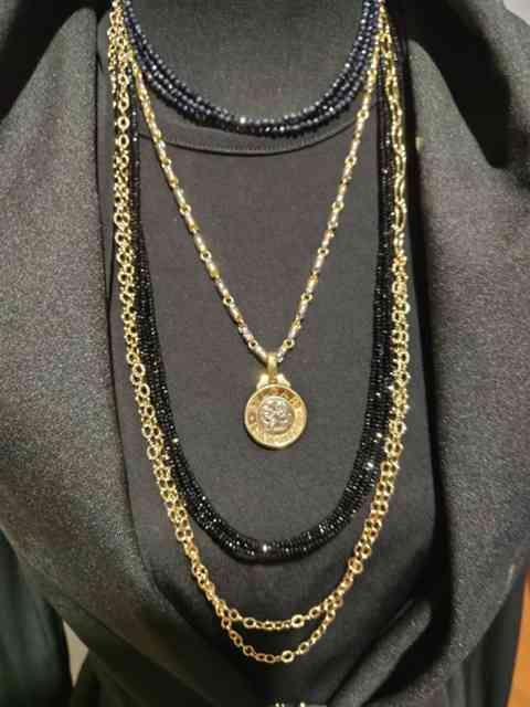 なので私の最近はやはりビーズチェーンで、過去に購入した地金ネックレスを重ねて、変化を楽しんでいます。