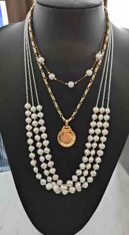 ショート、ロング、ステーション、ラリエットなどに白、黒、ゴールドと色々あって、お写真見させていただくといつも楽しいですし、アレンジの勉強になります。