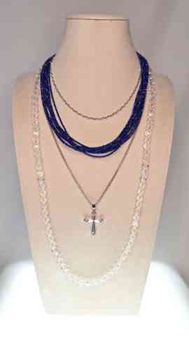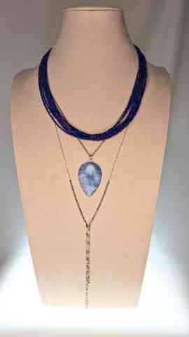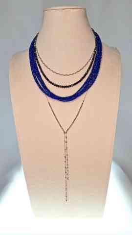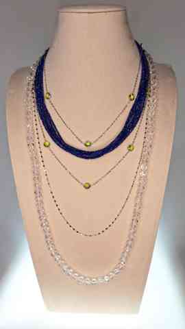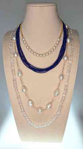 ラピスと、クォーツを使って437のコーデのチョーカー風に使われたパールのネックレスをラピスの内側に、そして、ラピス、その次に、431の長い大き目パールのステーション、一番外にクォーツロングだとどんな感じでしょうか?