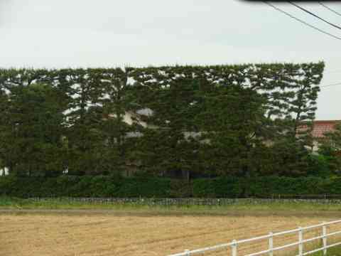 出雲へ行った時に四角く剪定された屋根より高く家を囲む「築地松(ついじまつ)」という北西の季節風から家屋敷を守る出雲独特の防風樹を沢山見かけた(写真)。台風にも強いという。そう言えば近所の妙正寺は白樫(しらかし)の樹を剪定して本堂の防風用としていたし八王子の旧家でも見かけた。能登では杉とお国によって防風用の樹が違うのだろう。
