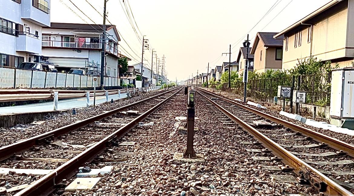 長々とレール伸び行く日の盛り
