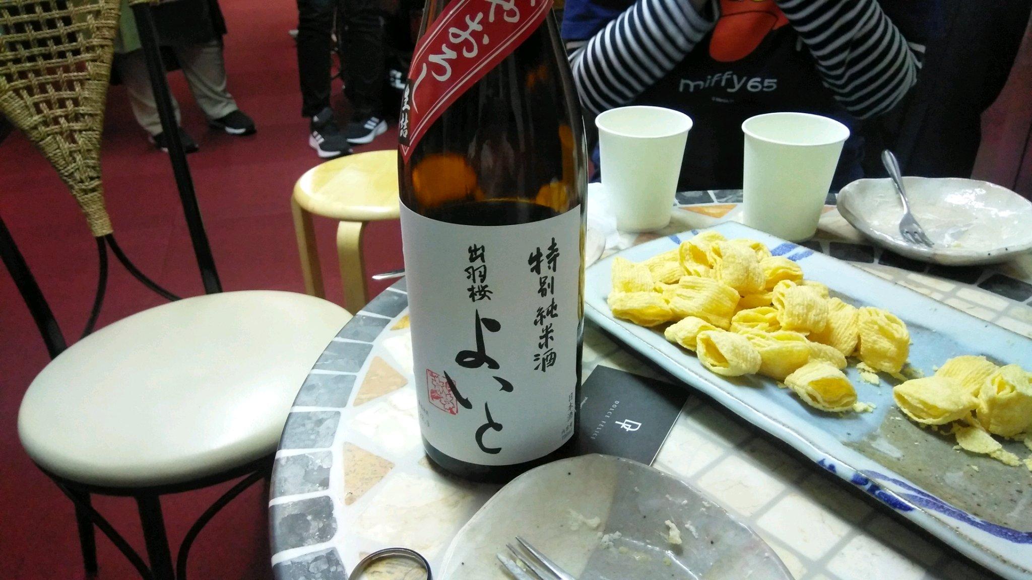 写真は出羽桜「よいと」、これは普通酒ではないが、さすが吟醸酒の生みの親、純米酒ひやおろしの酸味が素晴らしかった。個展の引き出物でひとりでほとんど飲んじゃった。(*^▽^*)ゞ。