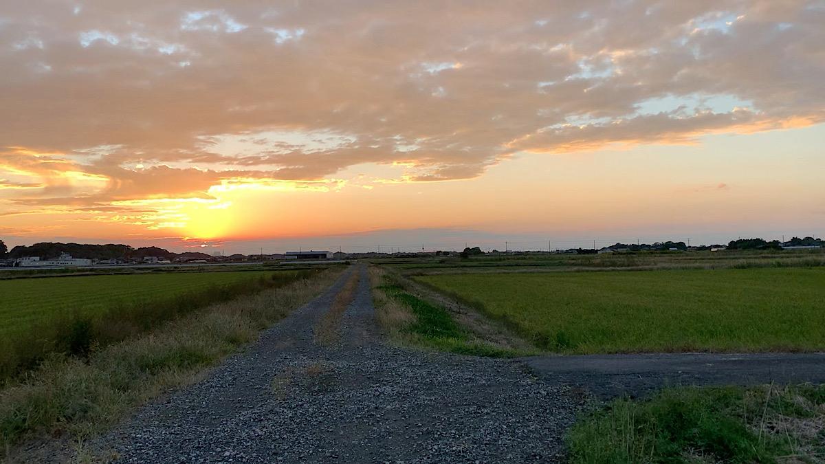 遠山の遥か先なる秋入日
