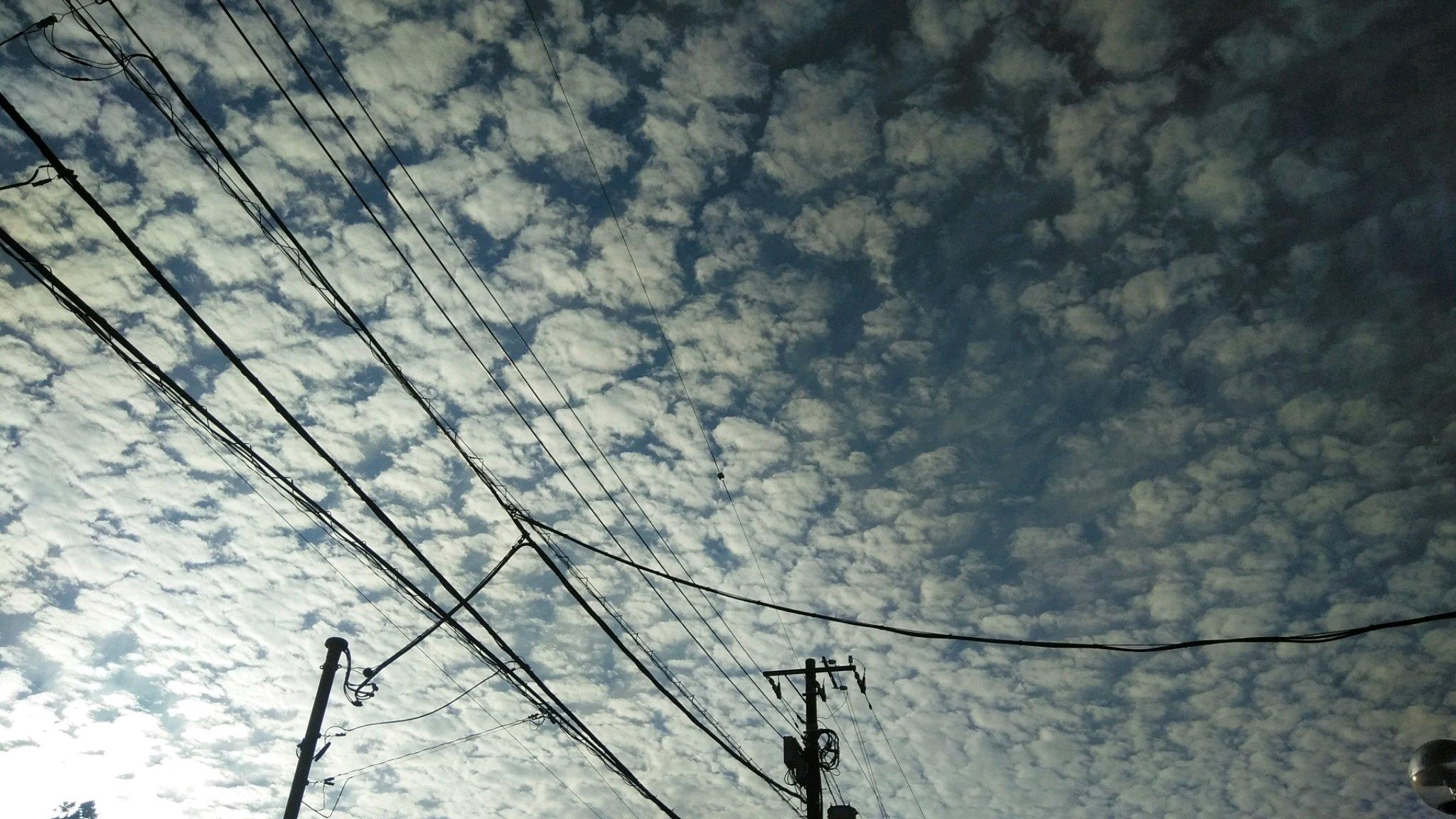 本当に今日は杜人さんが言うように「久しぶりに鰯雲が空いっぱいに広がりました」。写真はわたくしが吟ぶらする妙正寺川そばの電線と雲。