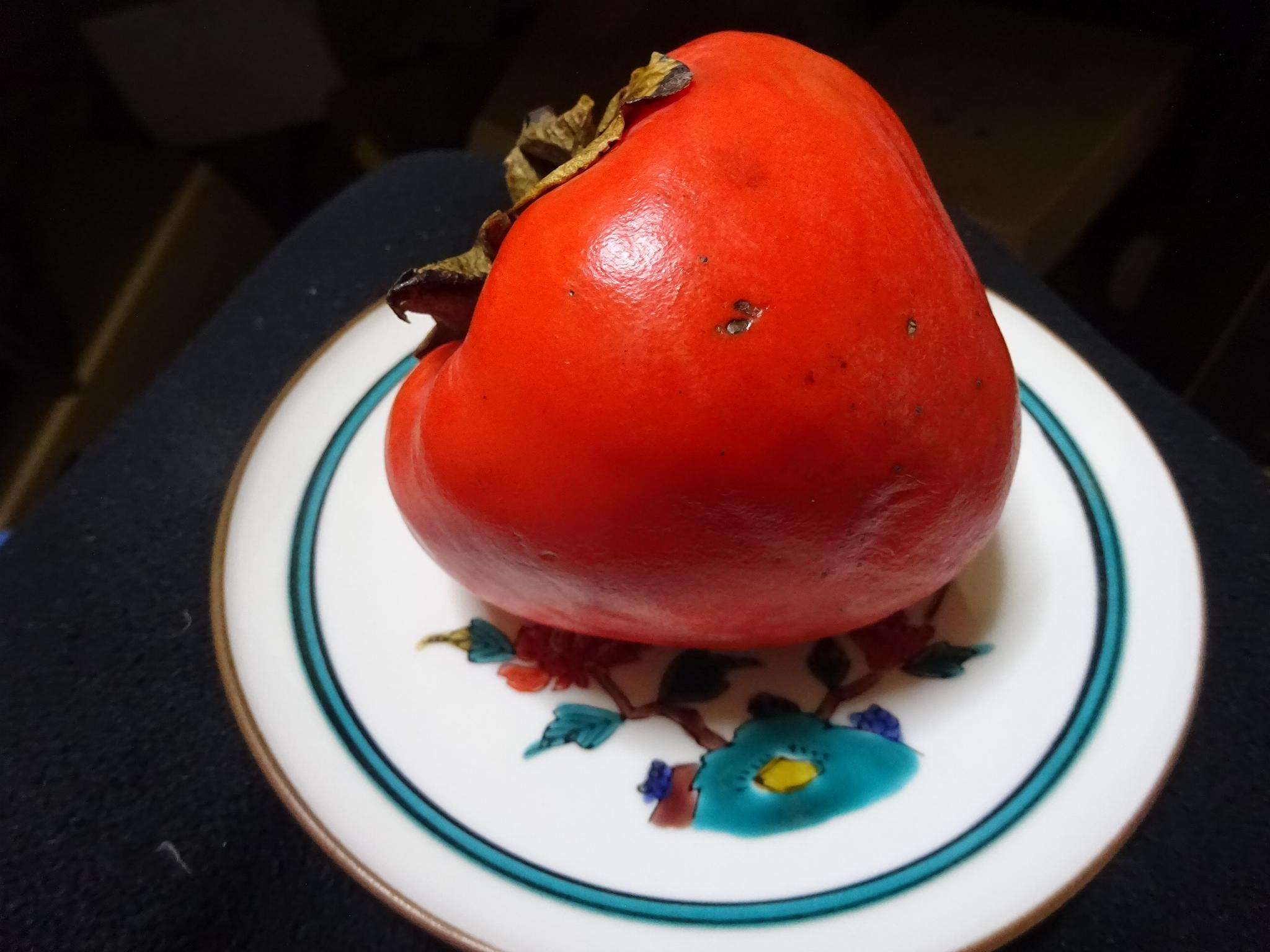 写真は愛媛八幡浜特産「甲州百目」(蜂屋柿)の500g以上の大きさを選んだ「富士柿」で日本一でっかい。