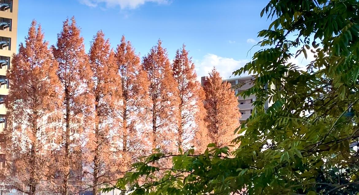 まあ、暖冬でいつもは11月22日には銀杏が黄葉して地面は黄金色に落葉を敷き詰めるのですが、今年は12月中旬過ぎてもまだ緑の銀杏並木があるわ、冬桜が満開だわとみんな驚いています。