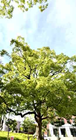 夕方に行くと6,7メートルを越す高さで、夕焼の逆光で赤みが増すのでこのアップの写真も少し赤みがかって見えるが、よく見ると種が見えるので、銀杏や金木犀と同じく雌雄異株の木だが、この季節には道行く老若男女はみなナニコレと立ち止まるので面白い。