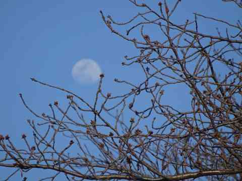 先週の金曜だったか昼の月が見えて、いつもはどこか欠けているのに満月のような昼の月を見たのは初めてだったので、たまたま句材に出会えればとカメラを持参していたので撮ったが、調べると25日(月)16時頃に満月の瞬間を迎え、3月の満月はアメリカの農事暦で「ワームムーン」とも呼ばれるそうな。土日と雨勝ちだったので夜は「ワームムーン」の満月は見られなかったので、昼に満月に近い春の月が見られたので良しとしよう。