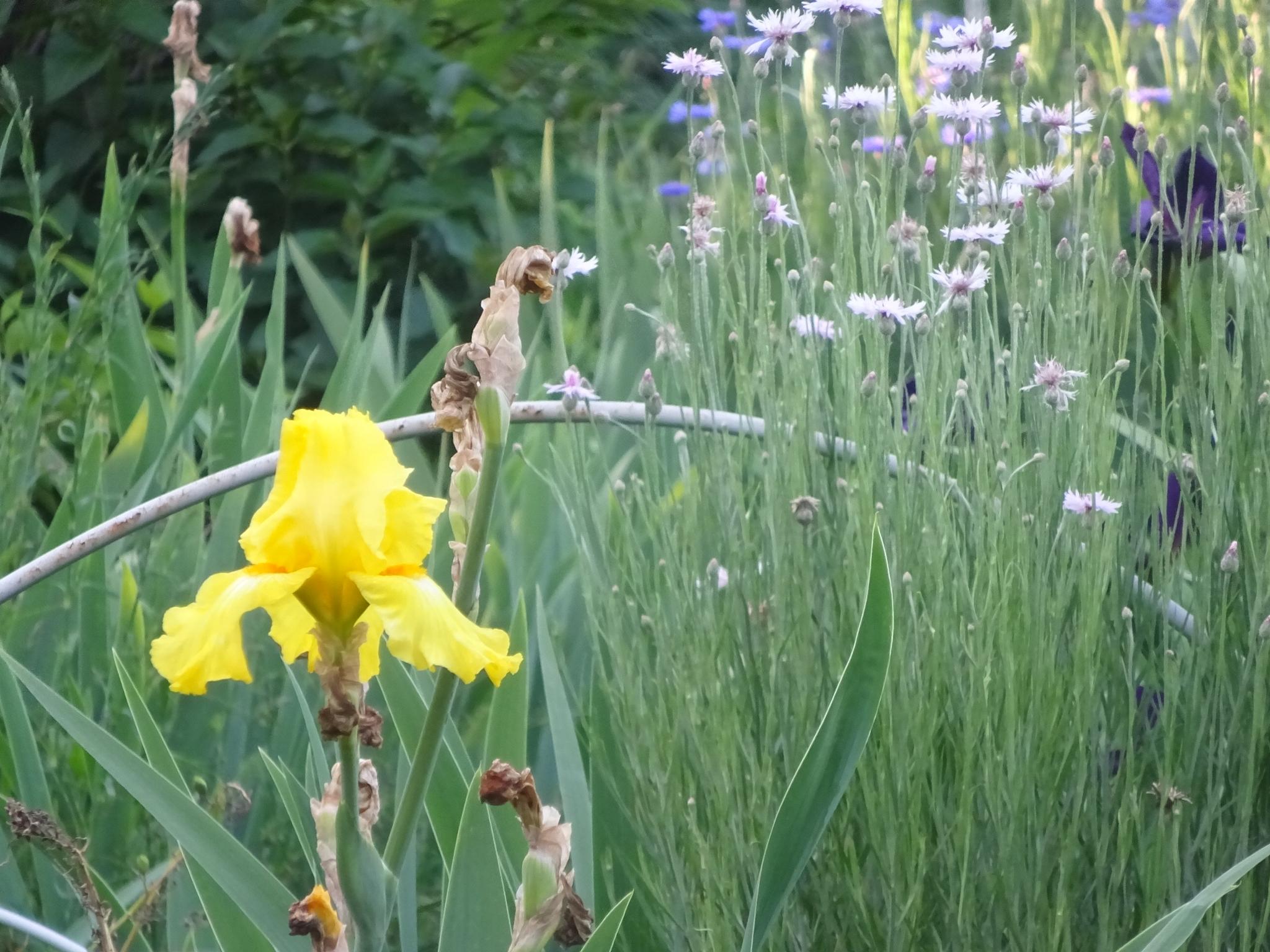 皐月も奴さんのような縁取りのある花や朱や白や桃色が一木に咲くものも出てきて、躑躅より小ぶりだが皐月は皐月でいろいろな交配の品種がありそうだ。蛍袋も四月の馬鹿陽気で咲いていたが、今日の真夏日でまた咲きだしていた。