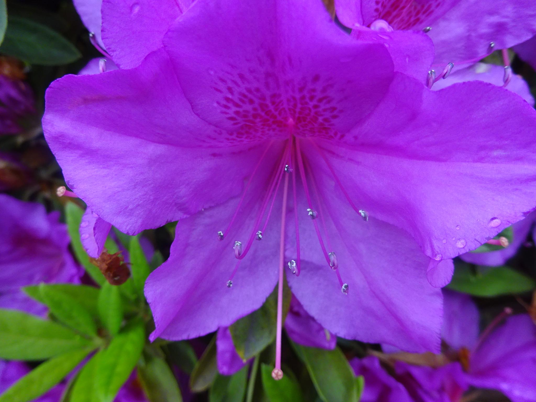 写真は背景の躑躅と同じものの別の写真のアップだが、御覧のように蕊の先が銀色に光っている。雨上がりのせいもあるが、初めて見たので、園丁に何という躑躅か聞いたら普通の躑躅だよと言われた。普通の躑躅で銀の蕊は珍しい。明日は煙の木(スモーク・ツリー)を撮りに。サン・ディエゴで見て面白いなあと思ったら、近所の造園に咲いていた。花言葉が「煙に巻く」だって。(*^▽^*)ゞ。