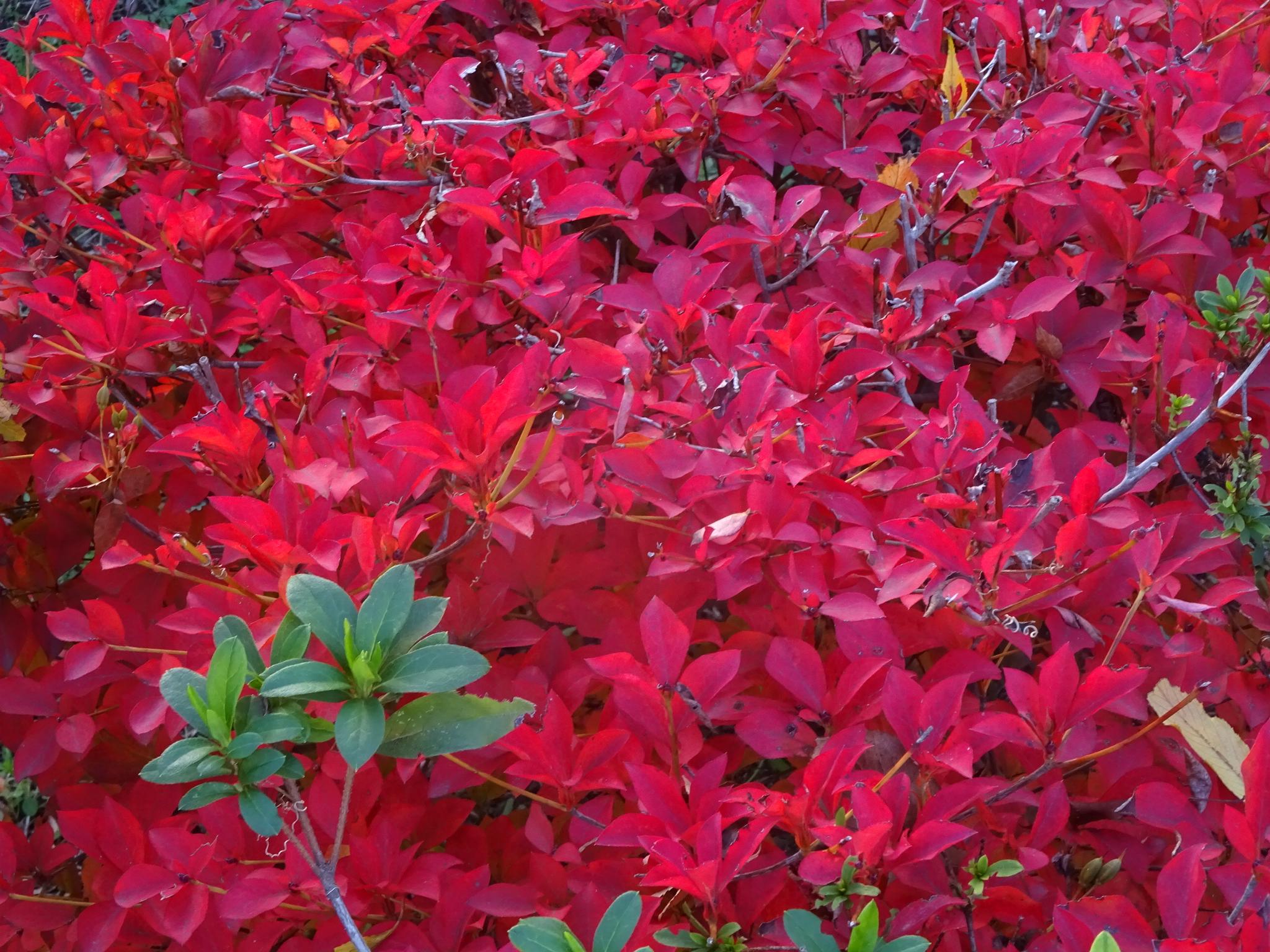 写真は妙正寺川沿いの満点星(どうだんつつじ)の冬紅葉。