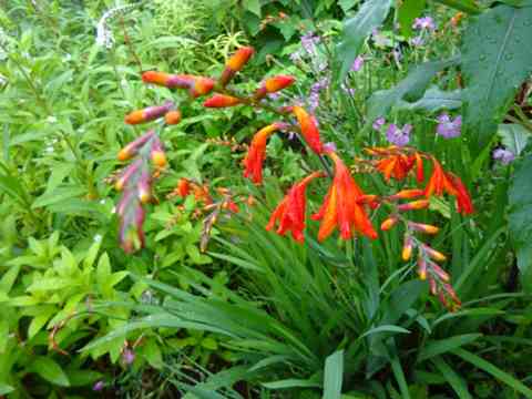 写真は檜扇、朱色の花では柘榴の花と並んで好きな花である。種子は真っ黒で射干玉(ぬばたま)と呼ばれ、和歌では「髪」や「黒」や「夜」や「夢」などにかかる枕詞として有名。
