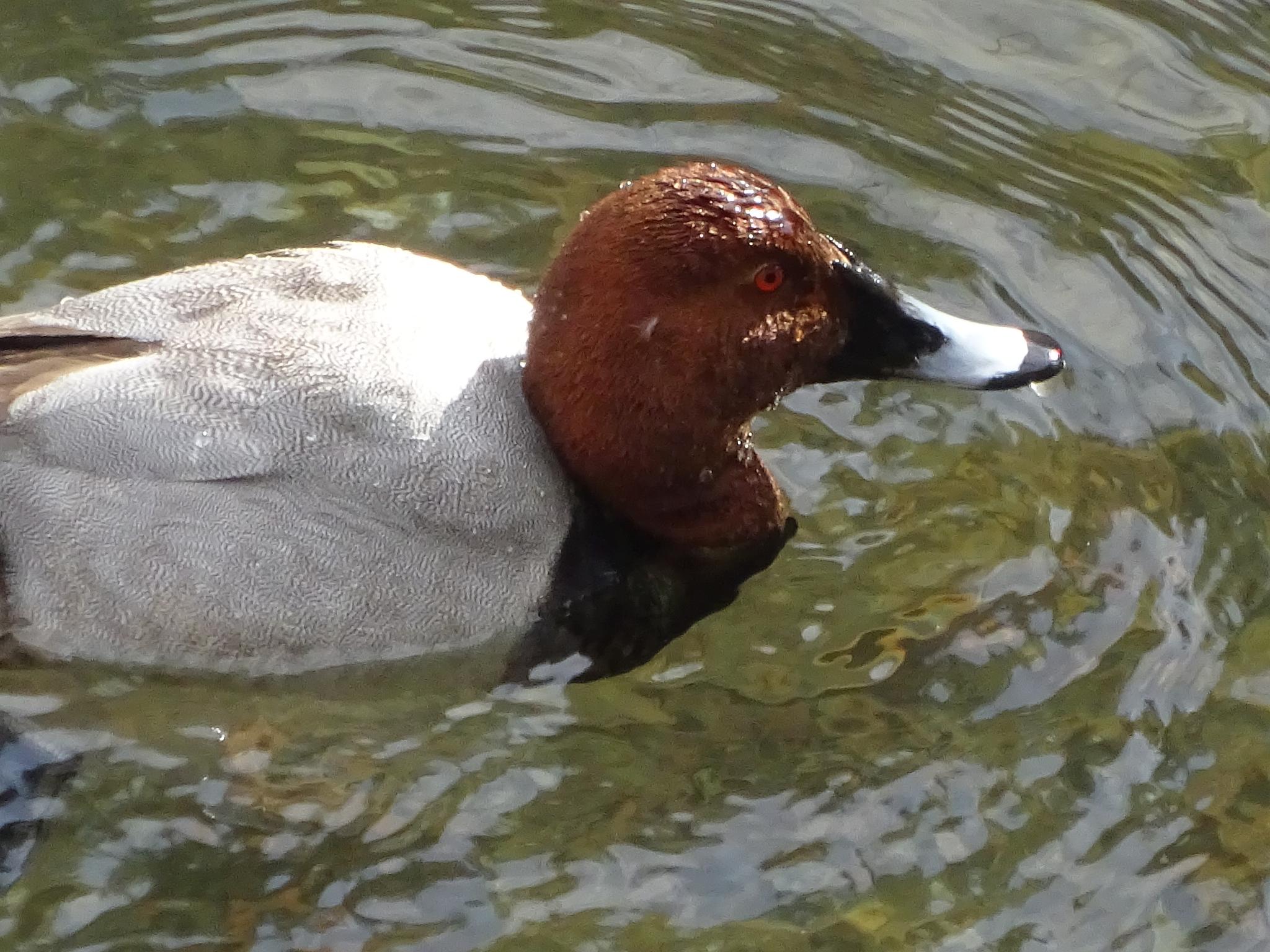 写真はホシハジロの♂。キンクロハジロに混じっていて初めて飛来してきた新顔の鴨である。