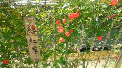 あ、そうそう、竹の子公園まで下りていったら便所の芳香剤の匂いがする。おいかけると金木犀がもう咲いている。確かもっと寒くなってから咲くと思っていたから30℃の暑さに間違えたのか。川沿いには熱帯原産の晩夏の真っ赤な縷紅草(るこうそう)が咲き誇っている。