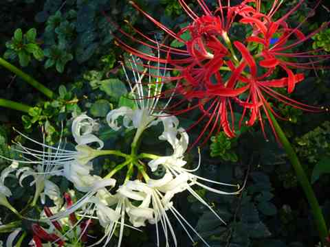 投稿しようとしたが、曼珠沙華はわたくしは花のなかではかなり珍しい独創的な形をしているので感心するが、彼岸花というぐらいでお墓に縁があるから日本では縁起のいい花とは思われていないし、しかし、辞書では曼珠沙華は「《(梵)mañjūṣakaの音写。如意花などと訳す》仏語。白色柔軟で、これを見る者はおのずから悪業を離れるという天界の花。」とあるから目出度い花なので時節柄今しかないなあと思っていたら、早起きアライグマがこの能天気さ♪レッツラゴンで行きましょう。