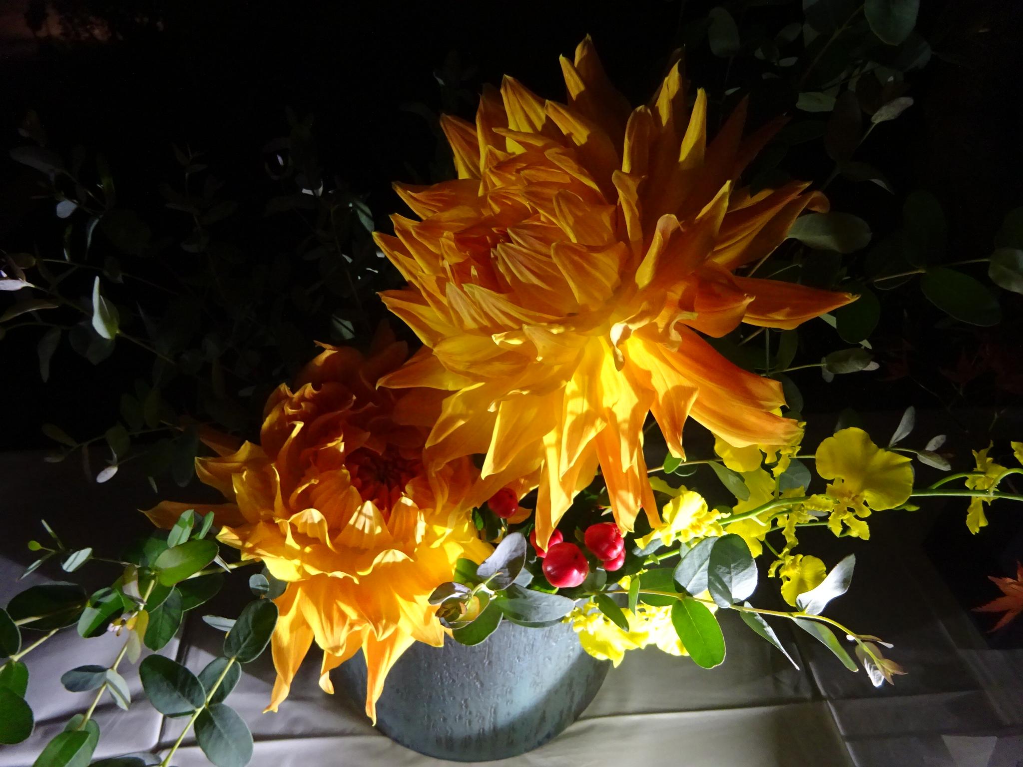 >音を黒光るとの見立てで冬落暉との赤と黒の対比、お見事。盗むのが上手になりました♪
