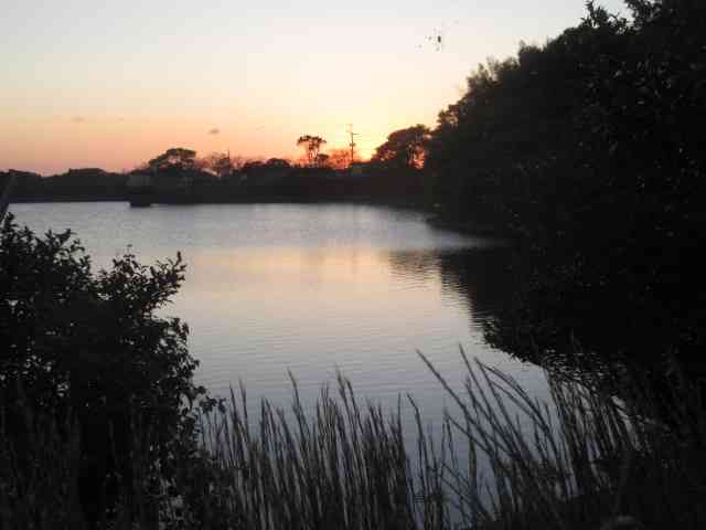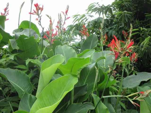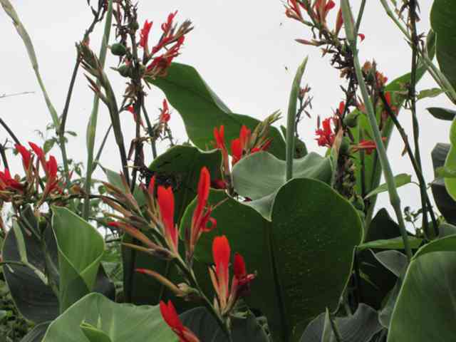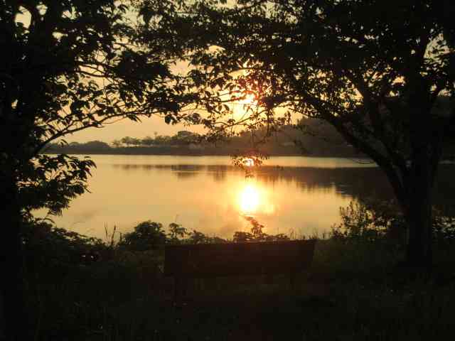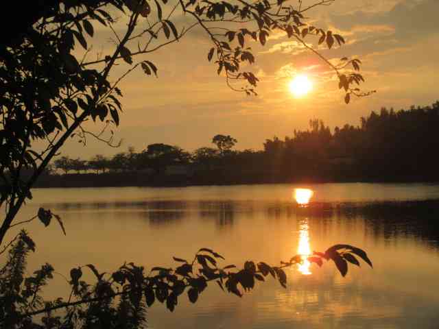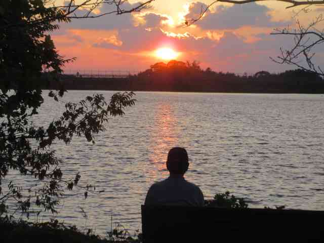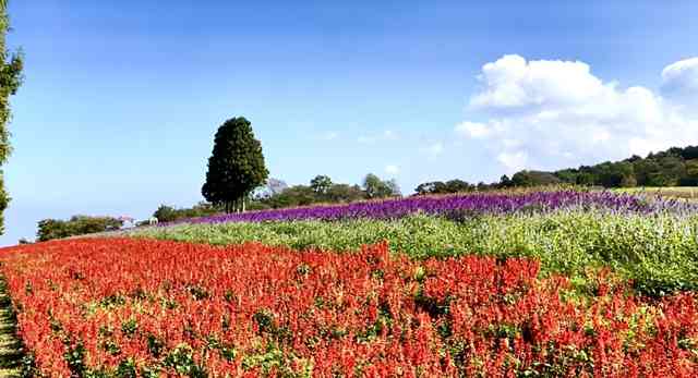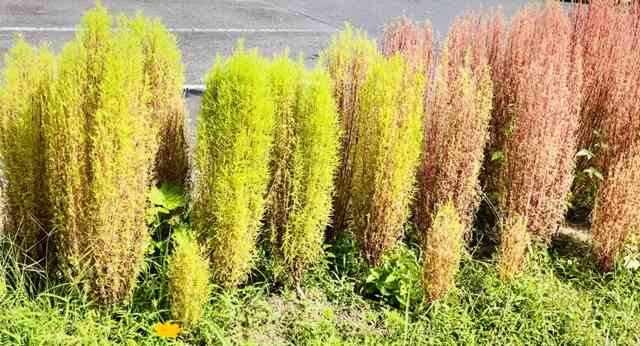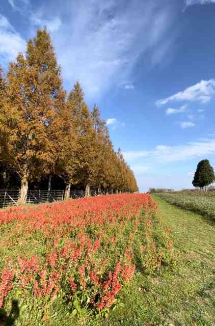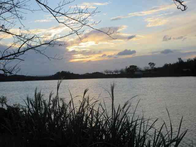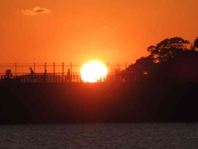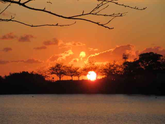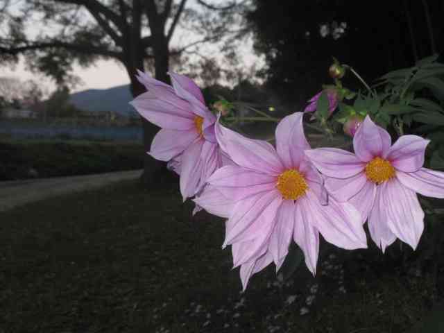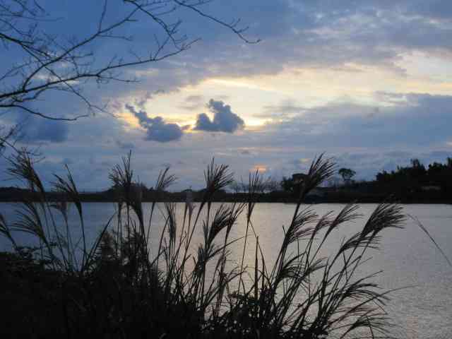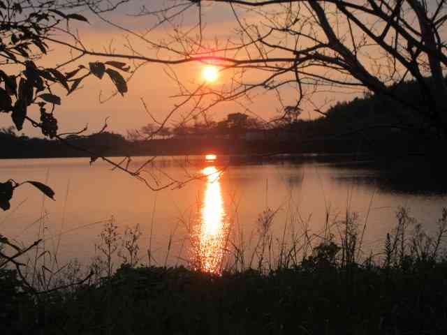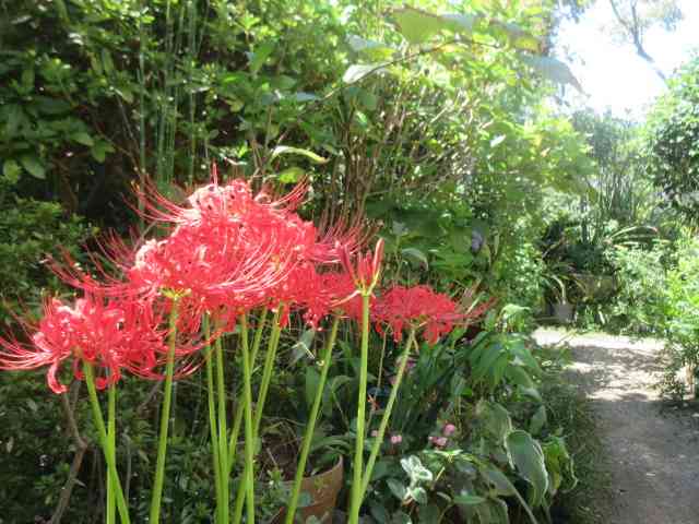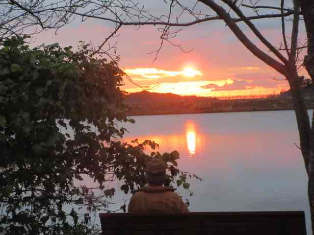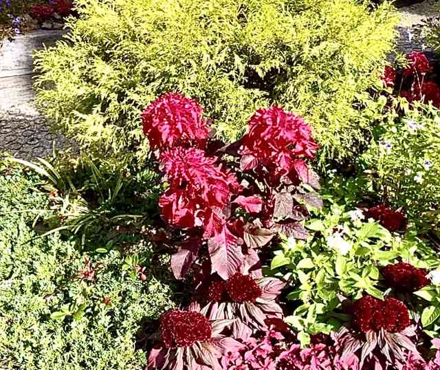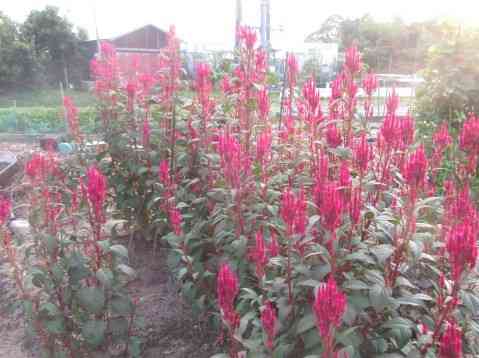 鶏頭の畔を彩る夕日中