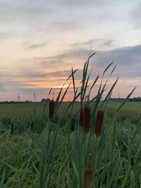 蒲の穂の並び立ちゐる夕日中