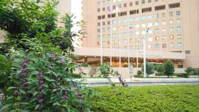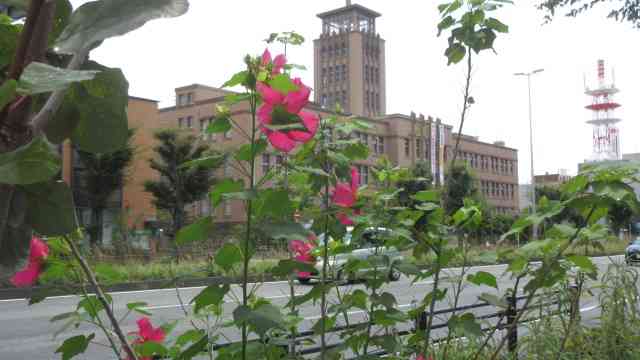 紅梅の後ろのホテル十二階