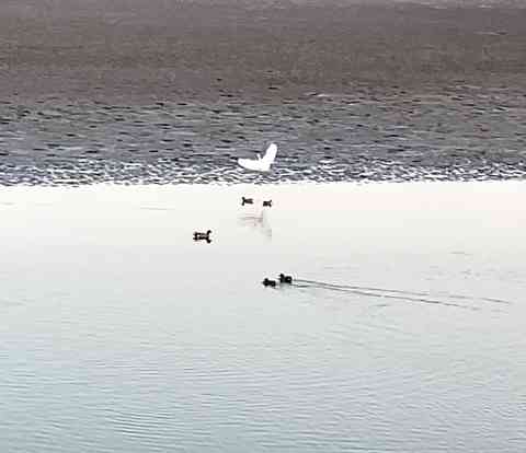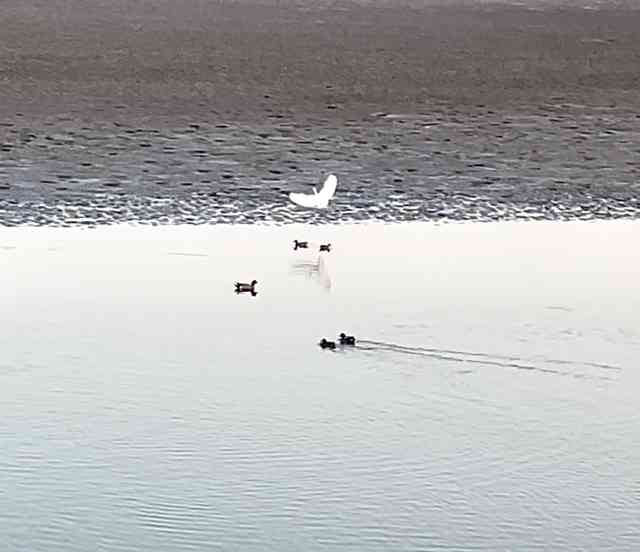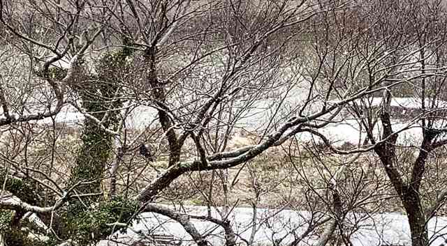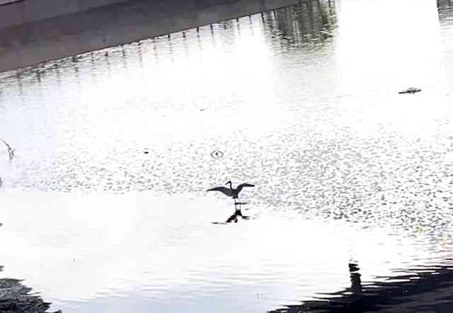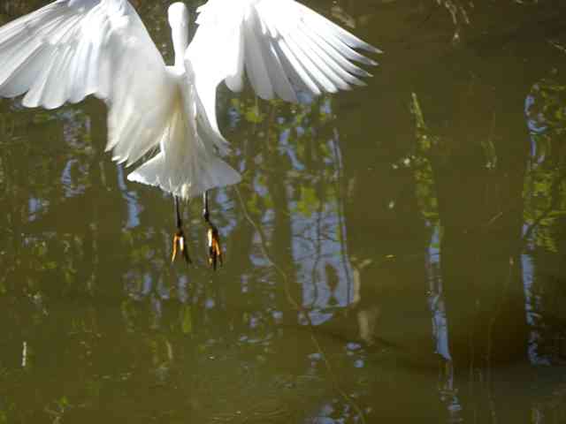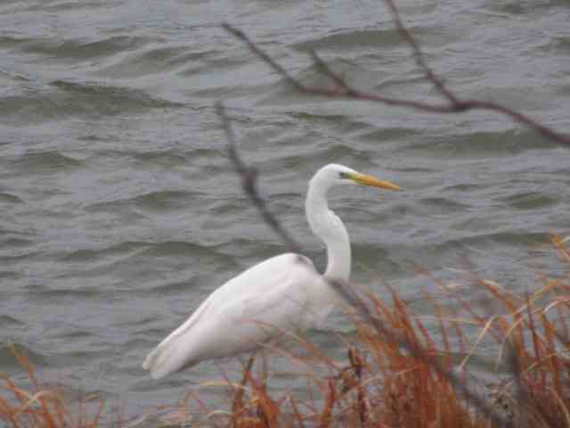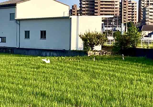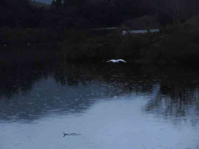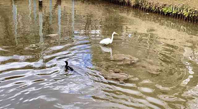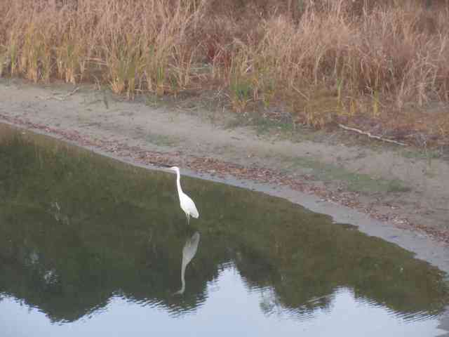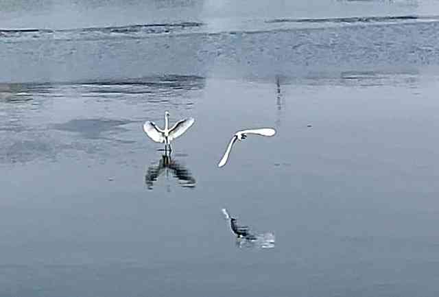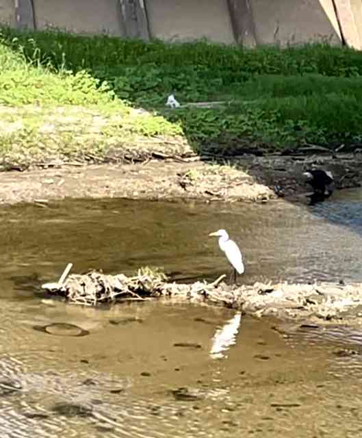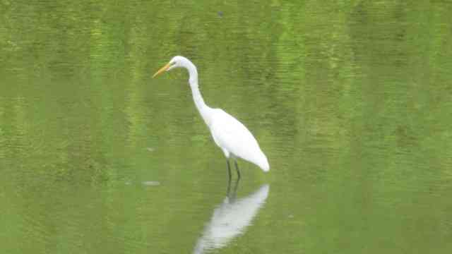 漁りに多少手こずる白き鷺