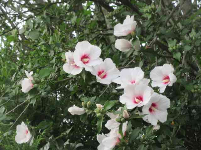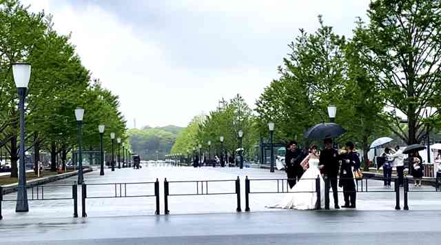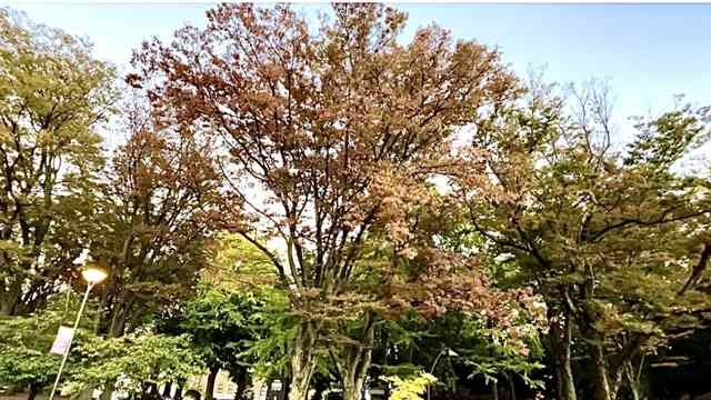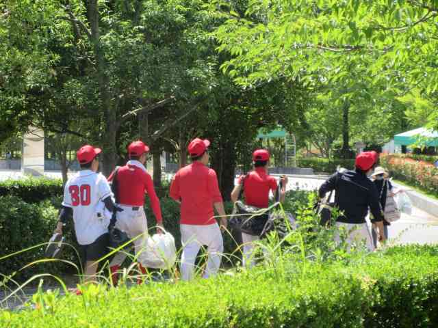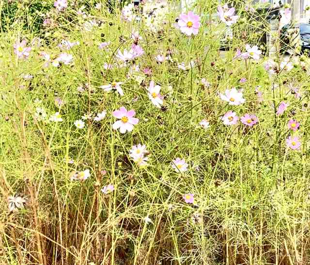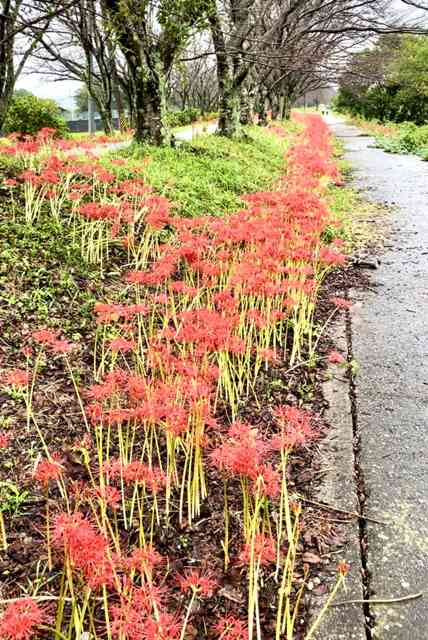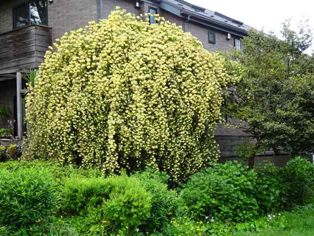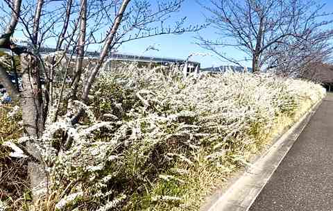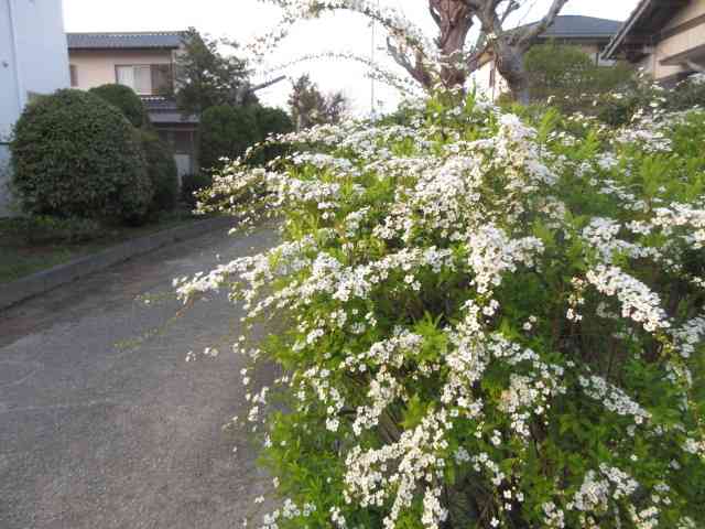 帰路につく朝の総会雪柳