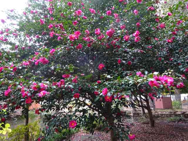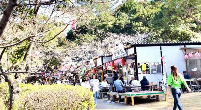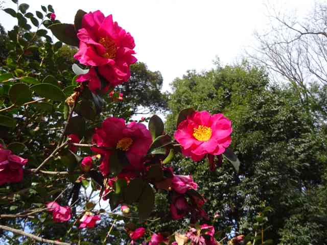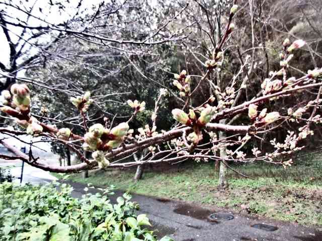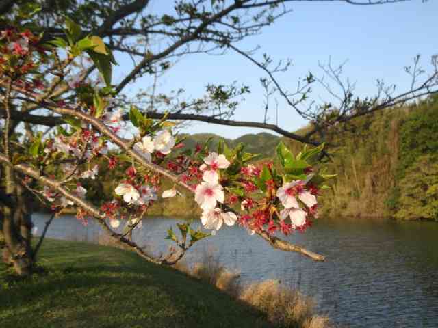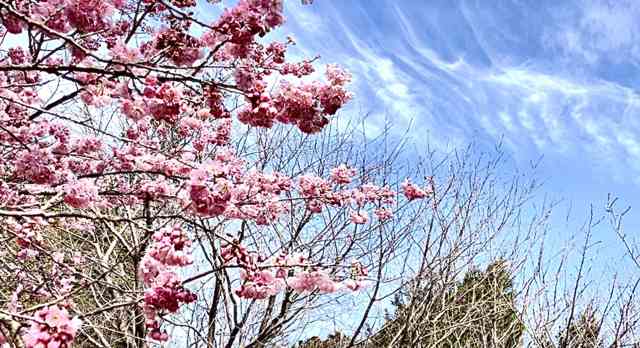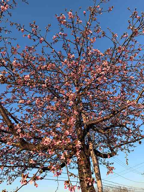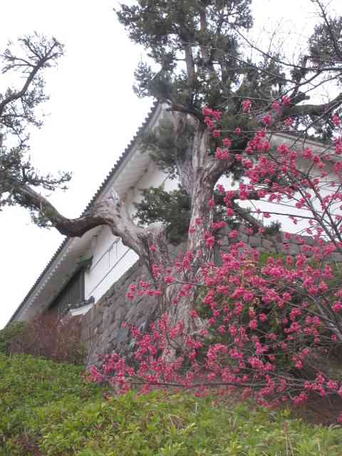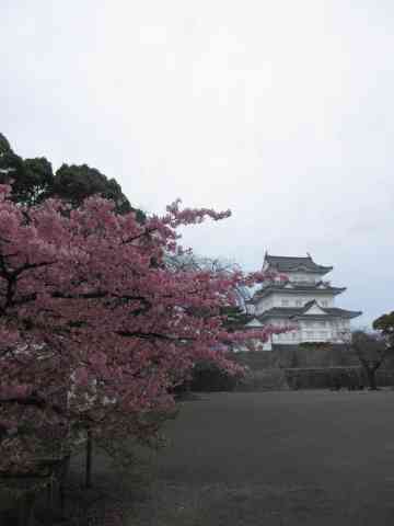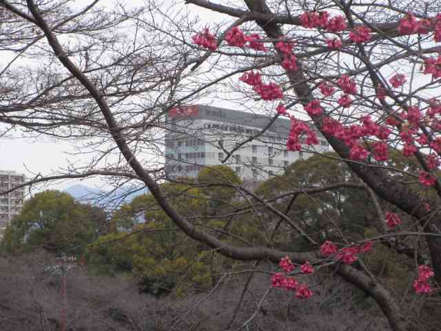 本丸に河津桜の花明かり