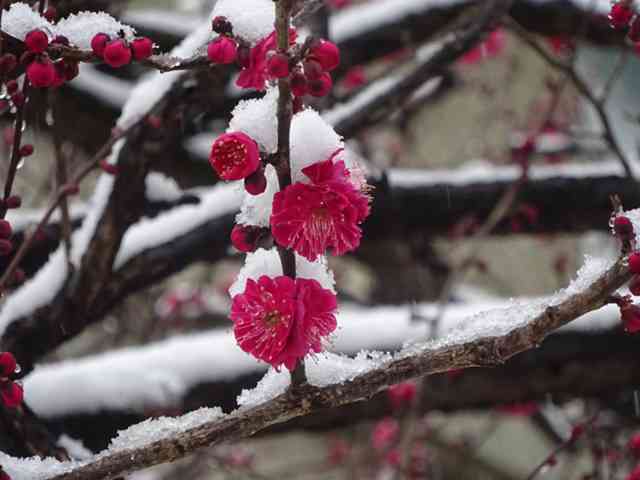 梅に置く栄華の名残りそこかしこ