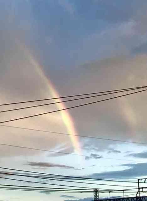 片足を畔に下ろして秋の虹