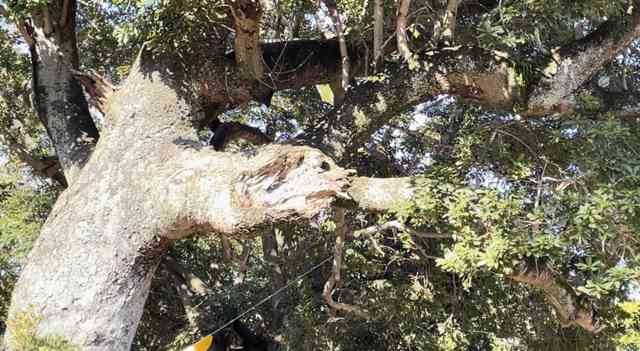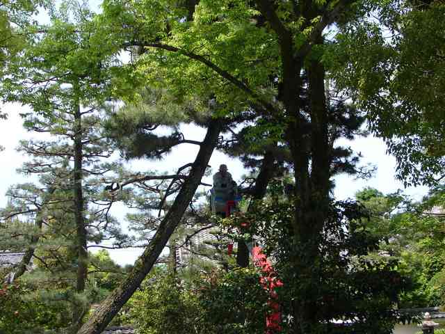 クレーンを伸ばす伏見の松手入