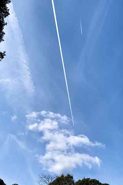 飛機雲に裂かれはじむや春の空
