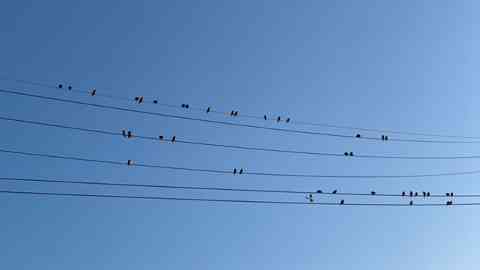 きっこさん、真知貝さん、皆さんこんばんは。スズメではない小鳥たちが無言で電線に並んでいました。五線譜ではなく六線譜でした(笑)。