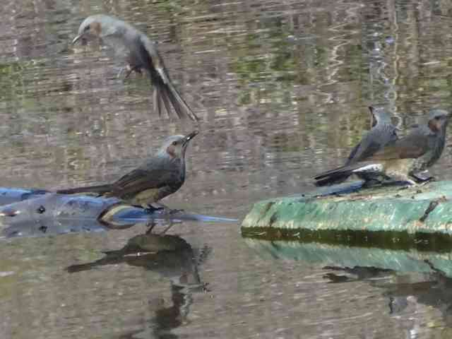 写真は水飲みに来るヒヨドリたち。