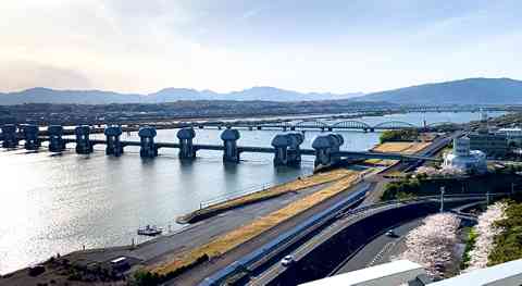 きっこさん、兎波さん、皆さんこんばんは。長良川河口堰、左に細い中洲を挟んで揖斐川が見えています。