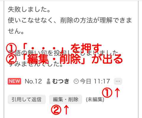 もう解決済みかもしれないですが、編集・削除について画像掲載しますね。よろしければご参照下さい。