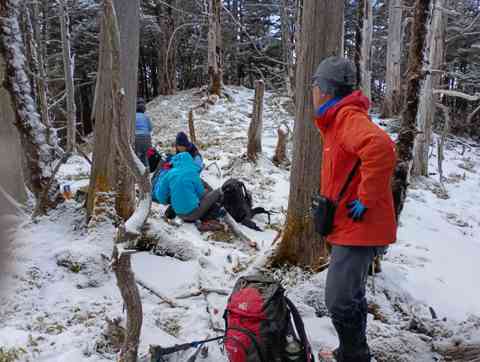 天候は今季、最長最大の寒波到来とかで、帰ってきてテレビで大雪のため、新千歳空港か陸の孤島となったとのニュース。道理で山頂寒さは強く、マイナス5~6度前後の状態でした。積雪自体は気にするほどではなく、チェーンアイゼンでも十分の状態でした。しかしながら、帰路の山道は崩壊気味の箇所が多いのと、これでもかというぐらいの落葉の積もりで慎重気味の下りとなりました。まあ、6年前のようにはいかないと思ってはいましたが、自然の摂理は如何ともしがたい。それでも富士は峰々まで見え、やはり冬富士はすばらしい。なんとか11時間の行程を終え、最終バス便に間に合い、車中ての安堵感を味わった。