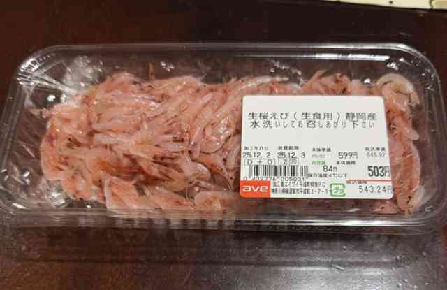 何と今日、埼玉のご当地大安売りスーパー「アライ」に生桜エビが現れました。かつてベルクで見てから四半世紀ぶりの登場です。もちろんゲットしてきました。しかもひとパック500円という良心的価格でした。