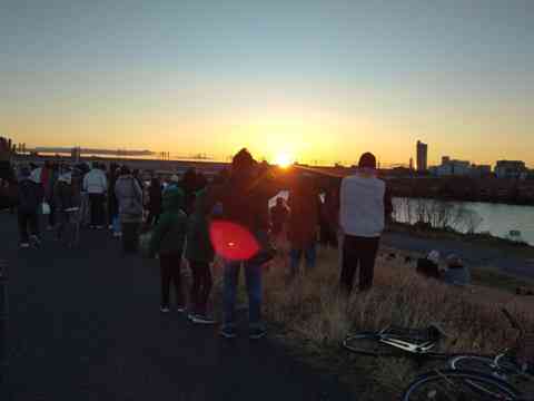 この河川敷は、初詣の人気スポットらしく、約400人程度の人が初日の出の見物に来ていました。