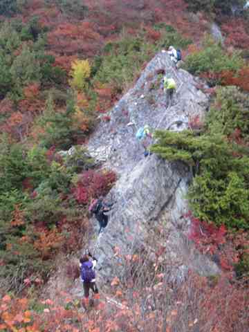 秋山郷の鳥甲山に行ってきました。紅葉真っ盛り、見事な景観を見せてくれました。前日、民泊の早朝出発とルート時間を最長に設定して慎重、かつ安全に登ってきました。通常の時計周りコースで2か所の登山口に車を配置しました。当初、予測設定の時間約10時間通りで、余裕の設定は危険個所にもゆっくり対処でき、各絶景ポイントで休息もできました。それでも長丁場、最後の下りは大部分の脚がへろへろ気味でした。久々の難関ルートは高齢者にとっても感激で、準備と仲間のフォローと天候の条件さえあれば、まだまた行けるとの実践を見せました。ただ帰路では「もう、こんな山はできんかもね」と最後に一言ありました。これからは山の難しさより美しさに焦点あわせて登る段階かもしれまん。蛇足で宣伝ですが、前日、お世話になった丸山荘は、手料理自慢のコスパ最高の民宿でした。風呂は近くの温泉にいくのですが、今回は屋敷地区の旅館の緑色の温泉に入らせていただきました。秋山郷に旅行のときは是非、予約してみてください。