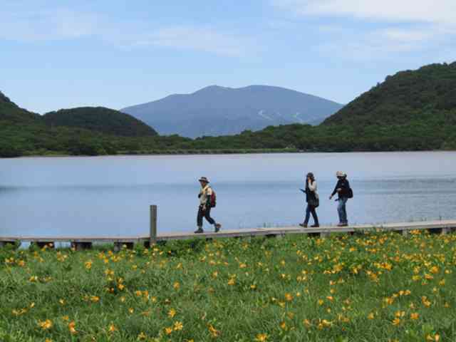 月刊山渓で梅雨時でも登れる場所を探していたら、雄国沼のニッコウキスゲが見ごろでコースも手ごろであることを見つけた。あそこまで足を伸ばすなら一泊して、天候次第でもう一山考えようということで出発した。日頃の行いが良いから(???)天候には恵まれた。現地はシャトルバスに乗り換え、雄国山を登ってから雄国沼周回で3時間あまり、なんともほどよいハイキングを楽しんだ。翌朝も晴れということで安達太良山沼尻コースを歩いた。同僚は40年前このコースの火口の真ん中を通ったとのことでした。現在は危険ということで廃道となっていました。工程終盤で天候も雨混じりとなりましたが、幸いにも小雨で済みました。一風呂所望と目当ての旅館を尋ねたが休業中。前日泊まった旅館を尋ねると、「前日のお客様ならお風呂ただで結構です」とのお言葉。なんとも手厚いもてなしに感謝の一言。今回も一期一会をもらいました。