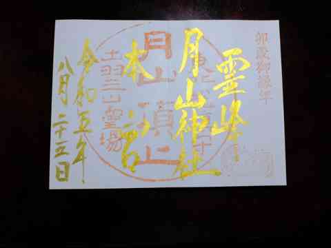 月山神社は今年、「卯歳御縁年」との由にて今年参拝すると12年分のご利益があるのだそうです。頂上で頂いた御朱印は、添付写真の如く金泥で記されており、御縁年ならでは?のものでした。