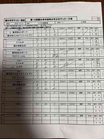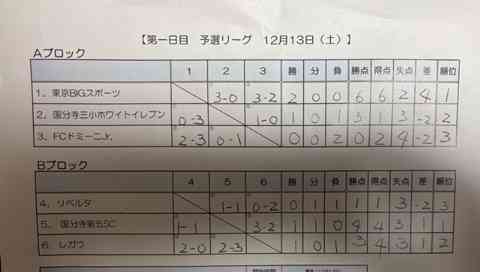 12月6日(土)第26回国分寺市2年生大会リーグ@けやき運動場のリーグ結果報告です。