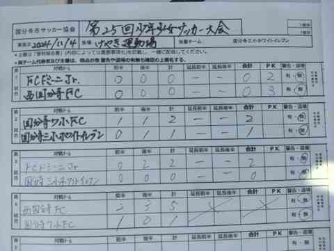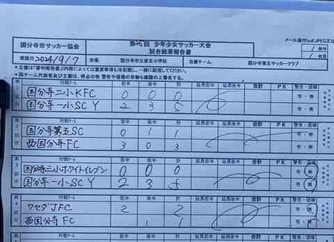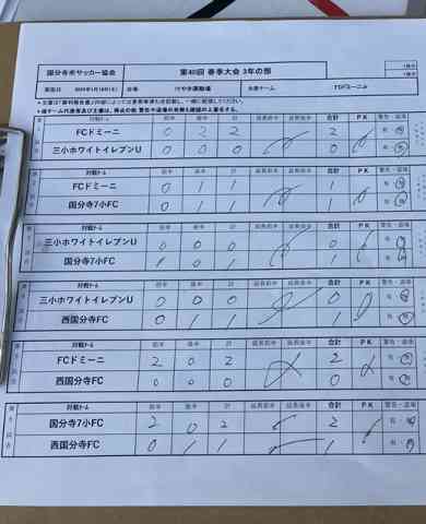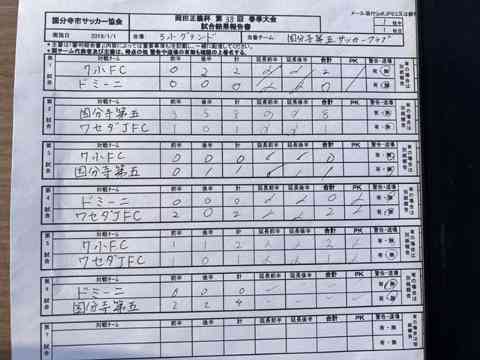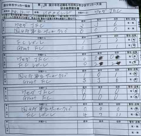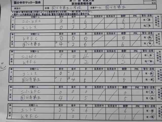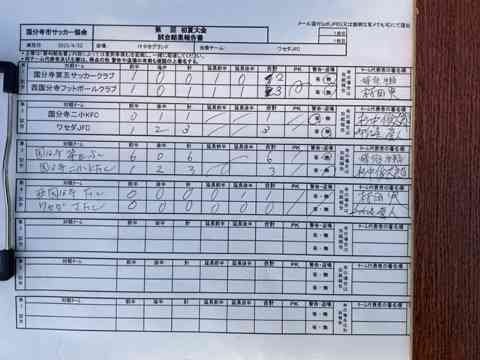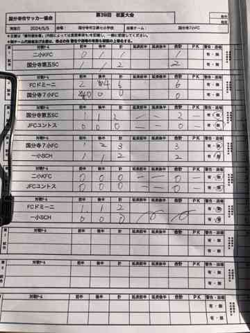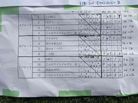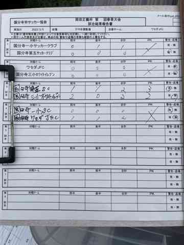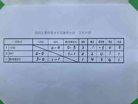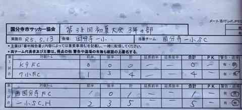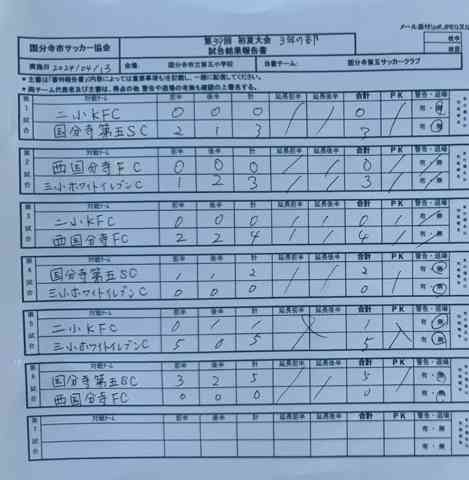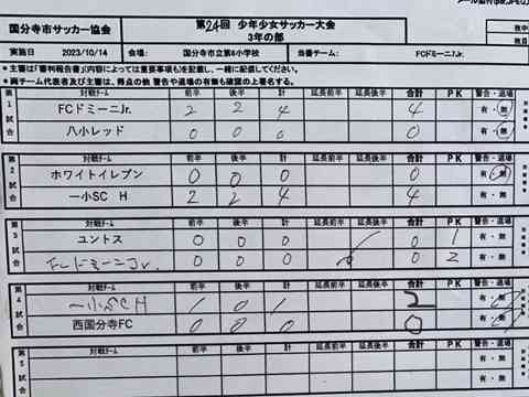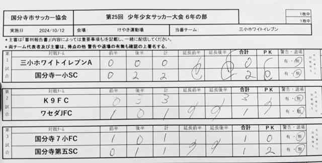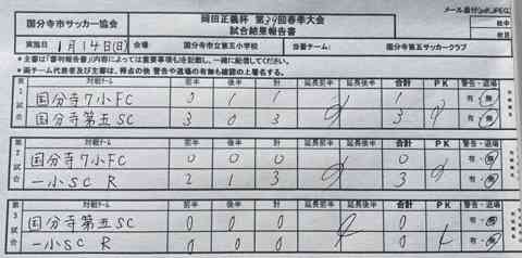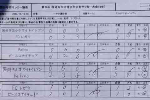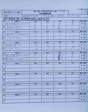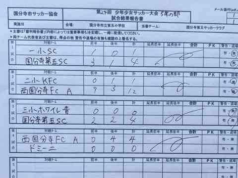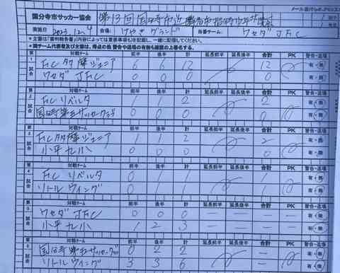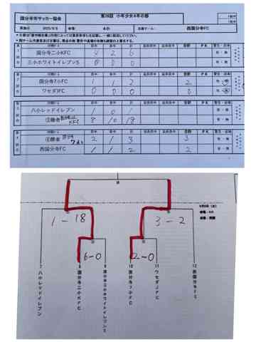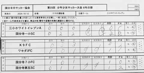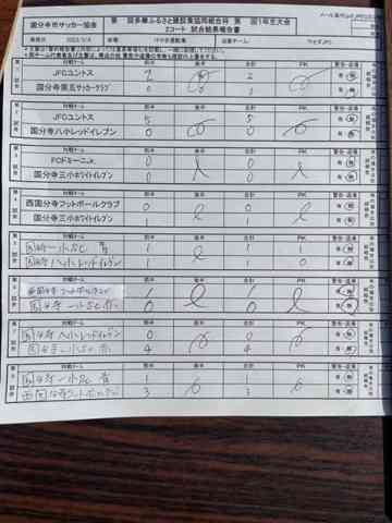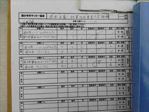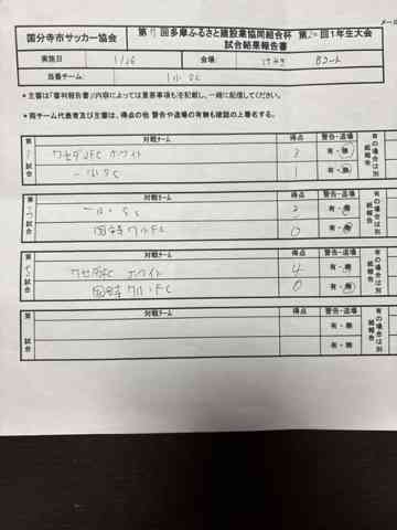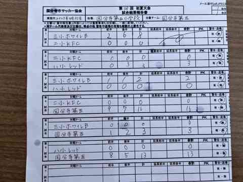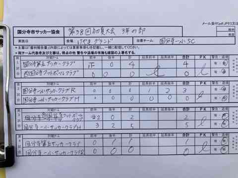 第23回 国分寺市少年少女サッカ 一大会(3年生)試合結果