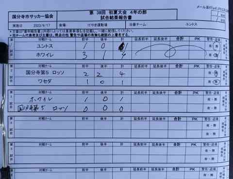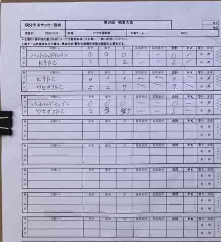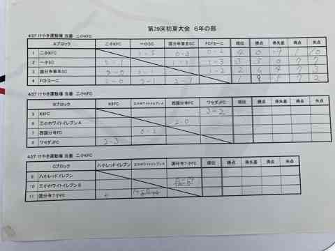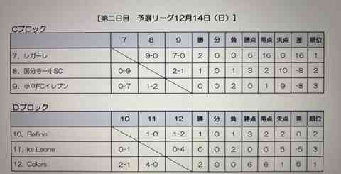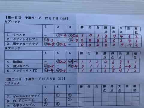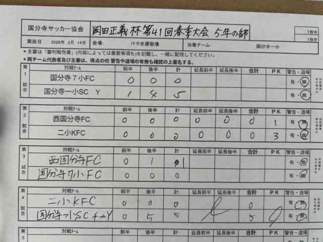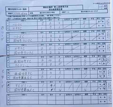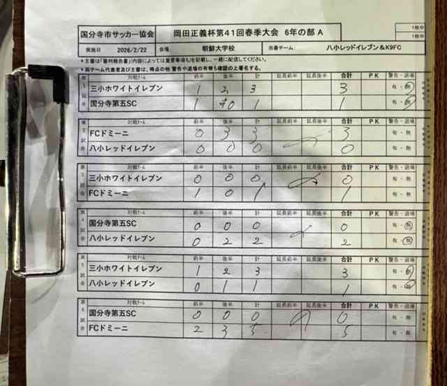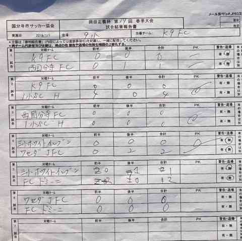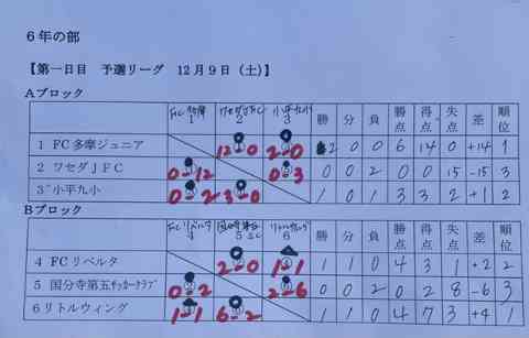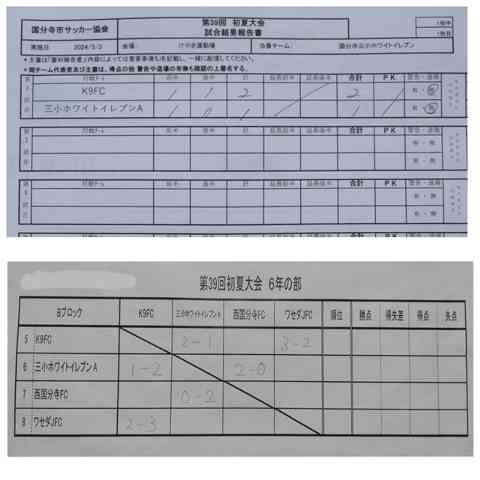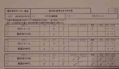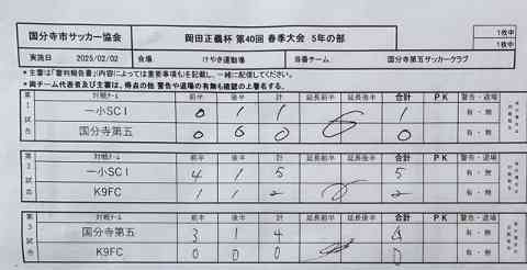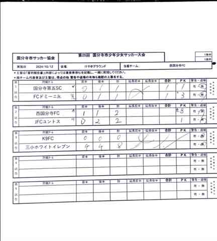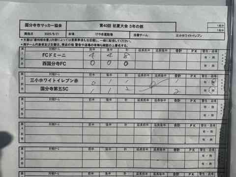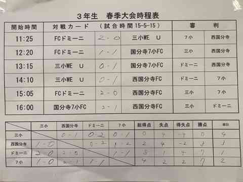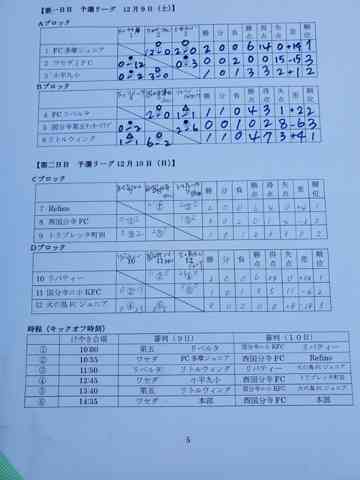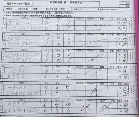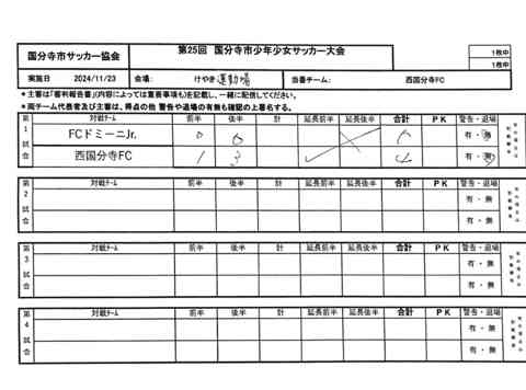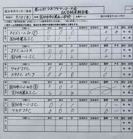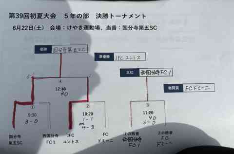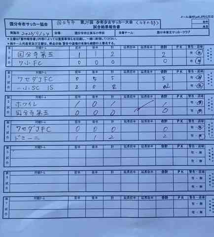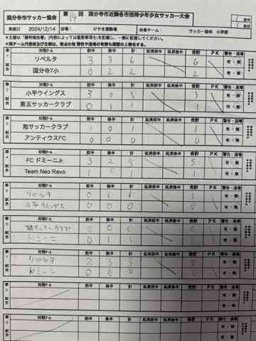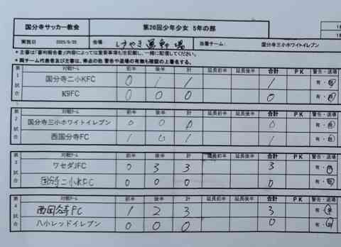 第23回 国分寺市少年少女サッカ 一大会(3年生)試合結果