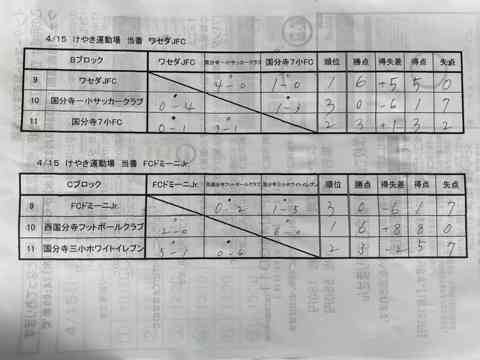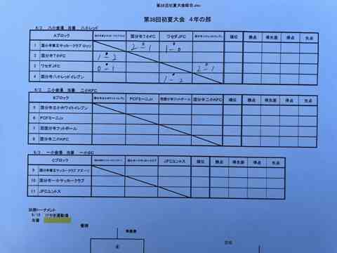 第23回国分寺市少年少女サッカー大会4年生の部 試合結果