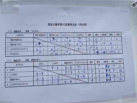 春季大会6年の部 AブロックとBブロック 星取り表を掲載いたします。