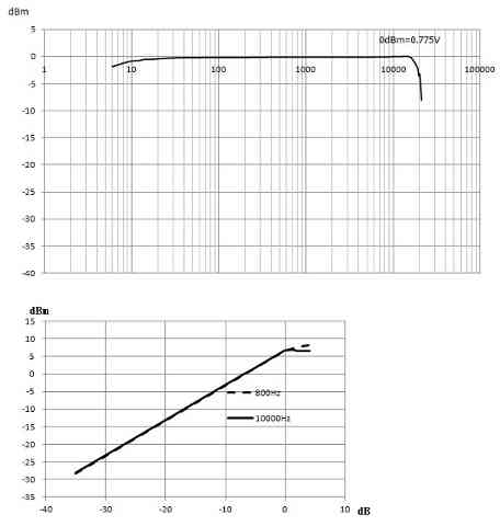 高域は19.4kHz(-3dB)、低域が5Hz(-3dB)、出力レベルは+6.7dBm(1.67V)でクリップ領域に入っています。