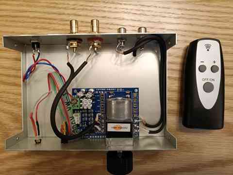 曲が始まってから音量の調整に立つのは興を削ぐなと感じていたら、面白いものがありました。アマゾンやeBay で売っている赤外線リモコンボリュームです。早速入手して組み上げました。といっても、電源と入出力をつなぐだけで動作します。